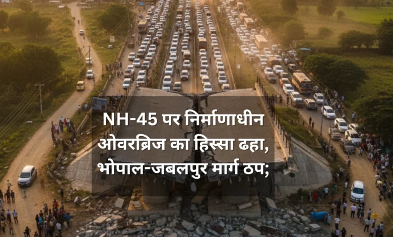 जबलपुर/शहपुरा: मध्य प्रदेश के जबलपुर जिले में रविवार शाम एक बड़ा हादसा होते-होते टल गया। नेशनल हाईवे-45 (NH-45) पर शहपुरा के पास रेलवे लाइन के ऊपर बन रहे एक ओवरब्रिज का बड़ा हिस्सा अचानक भरभरा कर गिर गया। गनीमत यह रही कि जिस समय यह हादसा हुआ, उस वक्त मलबे के नीचे कोई वाहन या राहगीर नहीं था, जिससे बड़ी जनहानि टल गई।